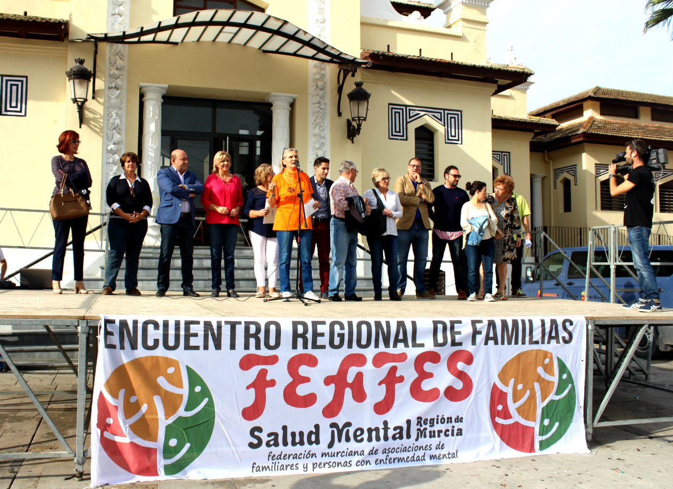 El Acto de Bienvenida se ha celebrado en la Plaza de España de Cieza presidido por D. Pascual Lucas Díaz, Alcalde de Cieza y Doña Violante Tomás Olivares, Consejera de Familia e igualdad de Oportunidades de Murcia que han acompañado a Dª Delia Topham Reguera, Presidenta de FEAFES Salud Mental Región de Murcia, D. José García Marín, Presidente de FUSAMEN, Doña Josefa Ruíz Moreno Presidenta de AFEMCE, D. Jonathan Yuste Carrasco Representante del Comité de Personas con